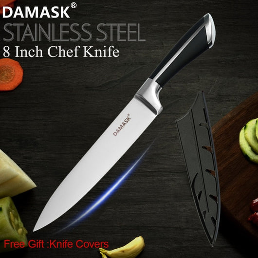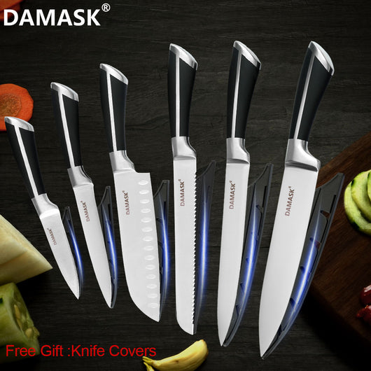 Damask Brand 3Cr14 Stainless Steel Kitchen Knives Set High Quality Kitchen Knife With POM Handle With Free Gift Knife Covers
