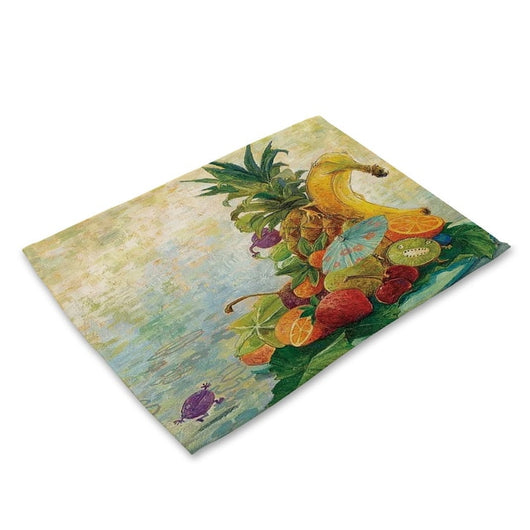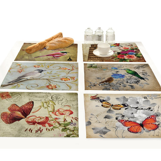 Cartoon Butterfly Birds Print Linen Fabric Placemat for Dining Table Manteles Flower Design Kitchen Decoration Accessories
