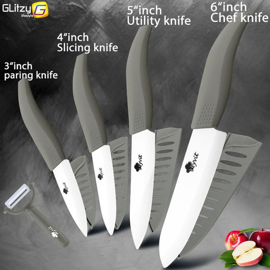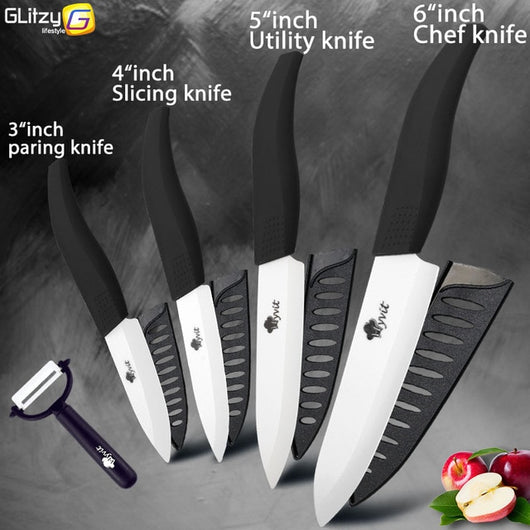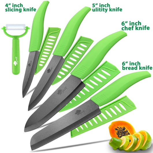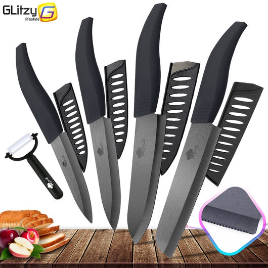 Ceramic Knife 3 4 5 inch + 6 inch Kitchen Knives Serrated Bread Set +Peeler Zirconia Black Blade Fruit Chef Knife Vege Cook Tool