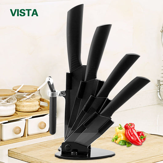 Kitchen knives Ceramic Knives Accessories set 3" Paring 4" Utility 5" Slicing 6" chef Knife+Holder+Peeler Black Blade